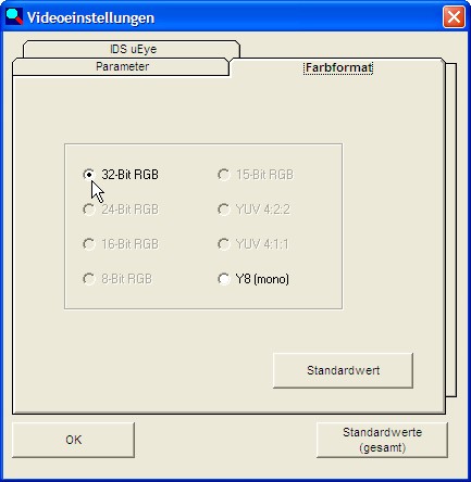 Serie uEye von I*D*S haben, nach Aufruf der"Videodarstellung"
