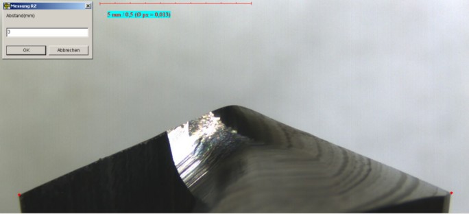 Nach Aktivierung der Funktion "Messung RZ" wird an beiden Schneidecken seitlich